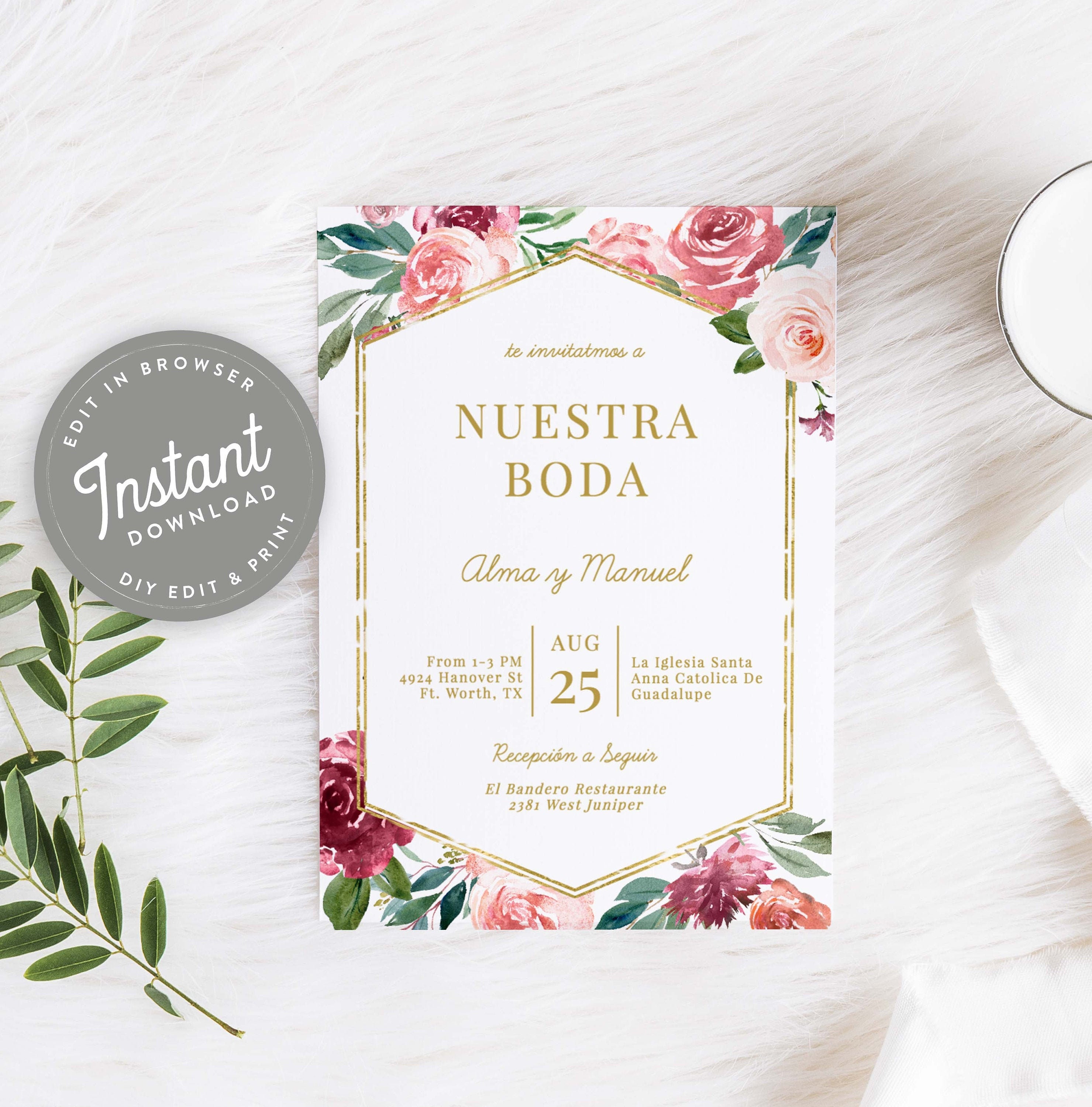 Invitaciones De Boda Template Con Flores Rojas Invitaciones Etsy